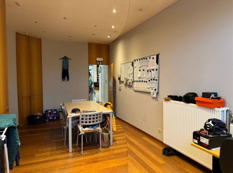 De kantoorruimtes zijn flexibel in te richten en hebben veel natuurlijk licht dankzij grote ramen. Er is ook een kitchenette en een ruime kelder van 75 m² voor opslag of archief. Recent is het pand volledig opgefrist en is de verwarming vernieuwd.