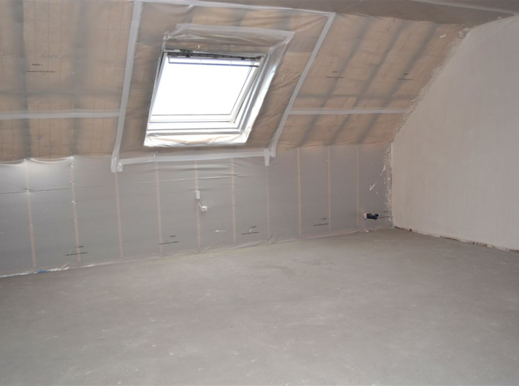 Via de beuken trap komen we op de verdieping. Hier vinden we de 3 ruime slaapkamers en de badkamer terug. De badkamer is voorzien van bad, inloopdouche en wastafel. Op de verdieping vinden we ook nog een apart toilet. De zolder is te bereiken via een vaste trap.