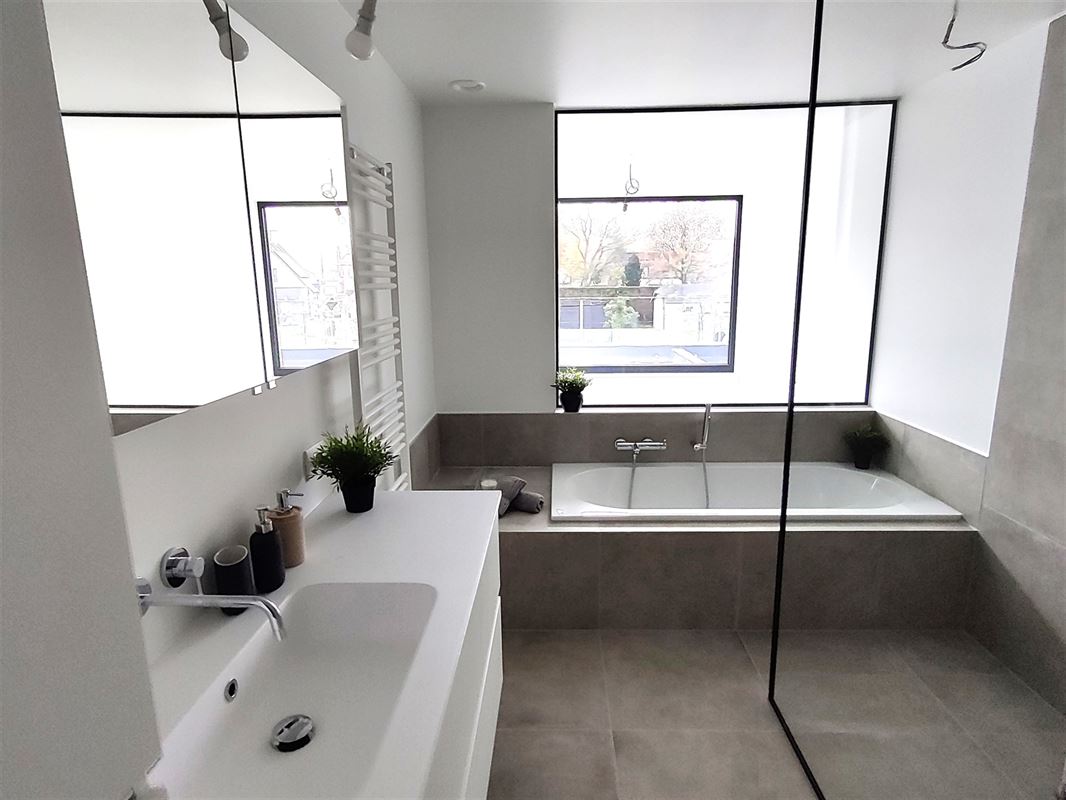 Verder vinden we op het gelijkvloers nog een apart toilet, een berging met wasplaats en de ruime garage.